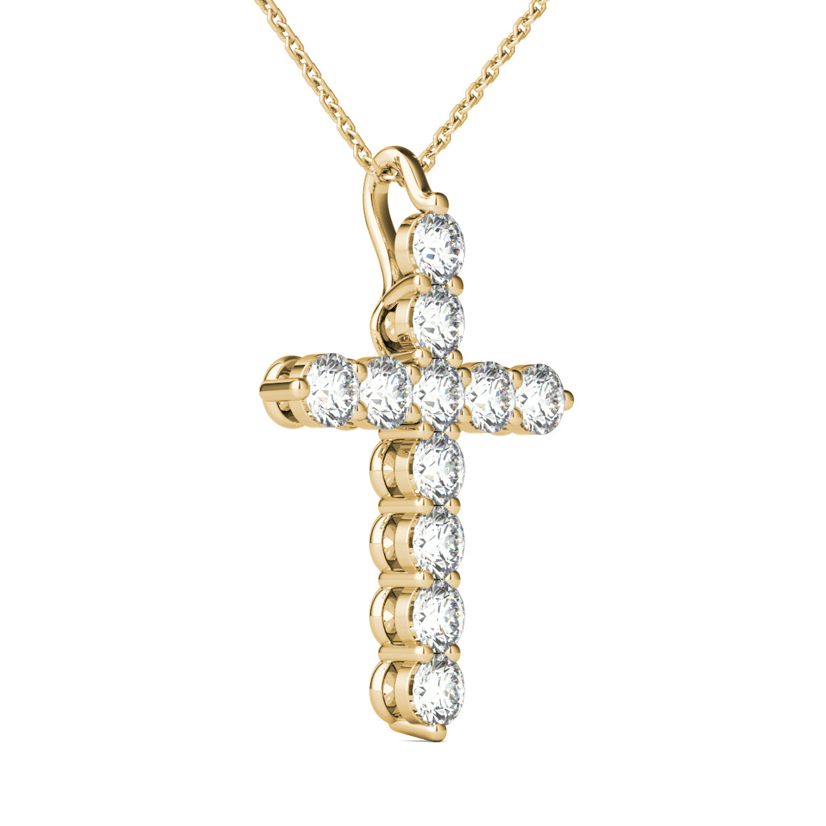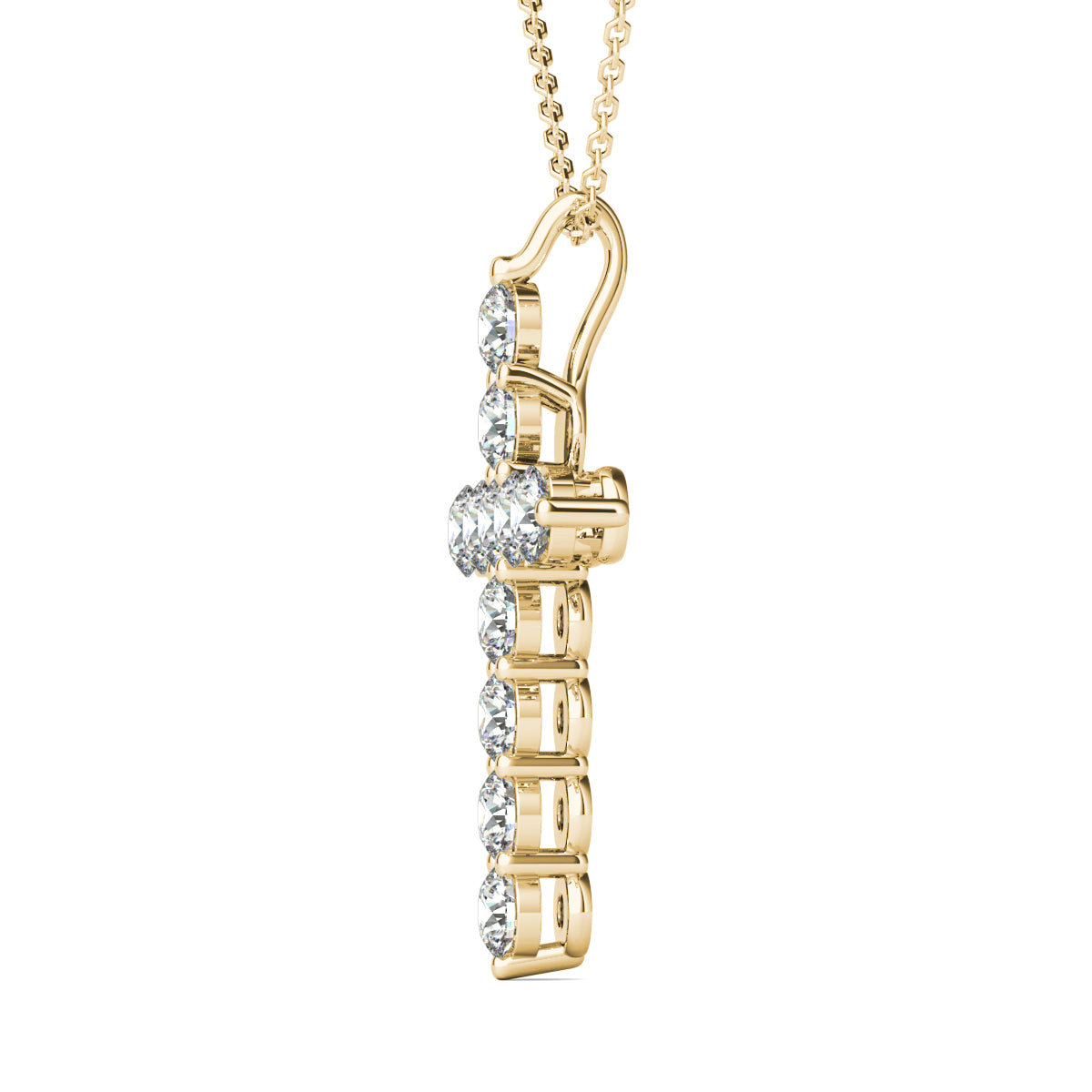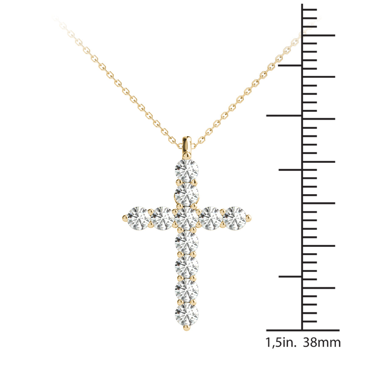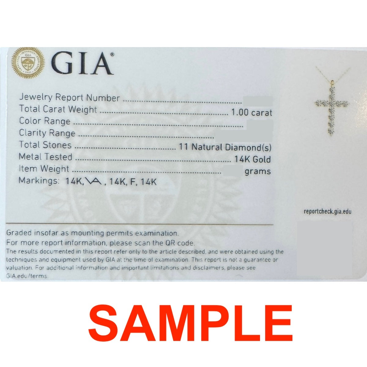 1.00 carats total weight diamond cross pendant with 18" chain. GIA certified. Polish - very good to good. Symmetry - very good to good. 14K yellow gold. Estimated retail value $2499. These are 100% natural conflict free diamonds. Cut and polished at our diamond cutting and polishing facilities, using state of the art technology, to bring out the maximum luster, brilliance and fire in the diamonds. Custom set in NYC and stamped with our brand logo. Every item is quality checked by GIA certified gemologists and packed in our branded gift box before being shipped to you.