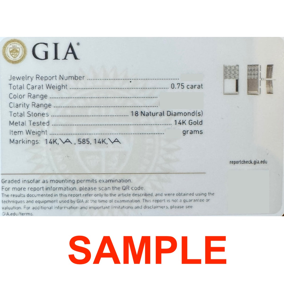 3/4 carat total weight diamond Cufflinks. GIA Certified. Polish-very good. Symmetry-very good. 14K white gold. Each diamond is approx. 2.1-2.2 mm in width. Estimated retail value $2,649.00. These are 100% natural conflict free diamonds. Cut and polished at our diamond cutting and polishing facilities, using state of the art technology, to bring out the maximum luster, brilliance and fire in the diamonds. Custom set in NYC and stamped with our brand logo. Every item is quality checked by GIA certified gemologists and packed in our branded gift box before being shipped to you.