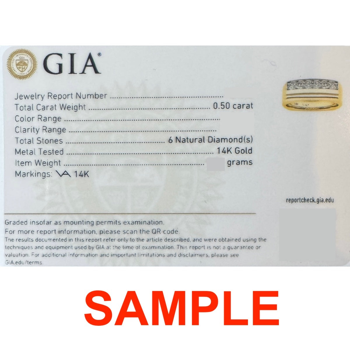 1/2 carats total weight diamond mens ring. Size 9.5. GIA certified. Polish - very good to good. Symmetry - very good to good. 14K white AND yellow gold. Estimated retail value $3999.00. These are 100% natural conflict free diamonds. Cut and polished at our diamond cutting and polishing facilities, using state of the art technology, to bring out the maximum luster, brilliance and fire in the diamonds. Custom set in NYC. Every item is quality checked by GIA certified gemologists and packed in our branded gift box before being shipped to you.